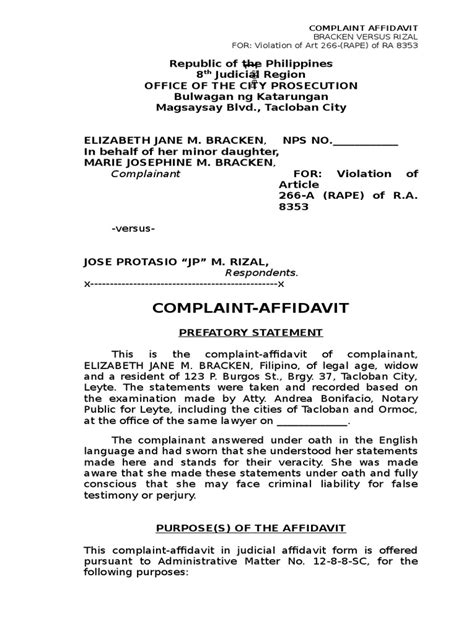 Affidavit Of Complaint . Download a sample of affidavit of complaint for filing a criminal case in the philippines. These statements are filed whenever a certain individual wants to file.